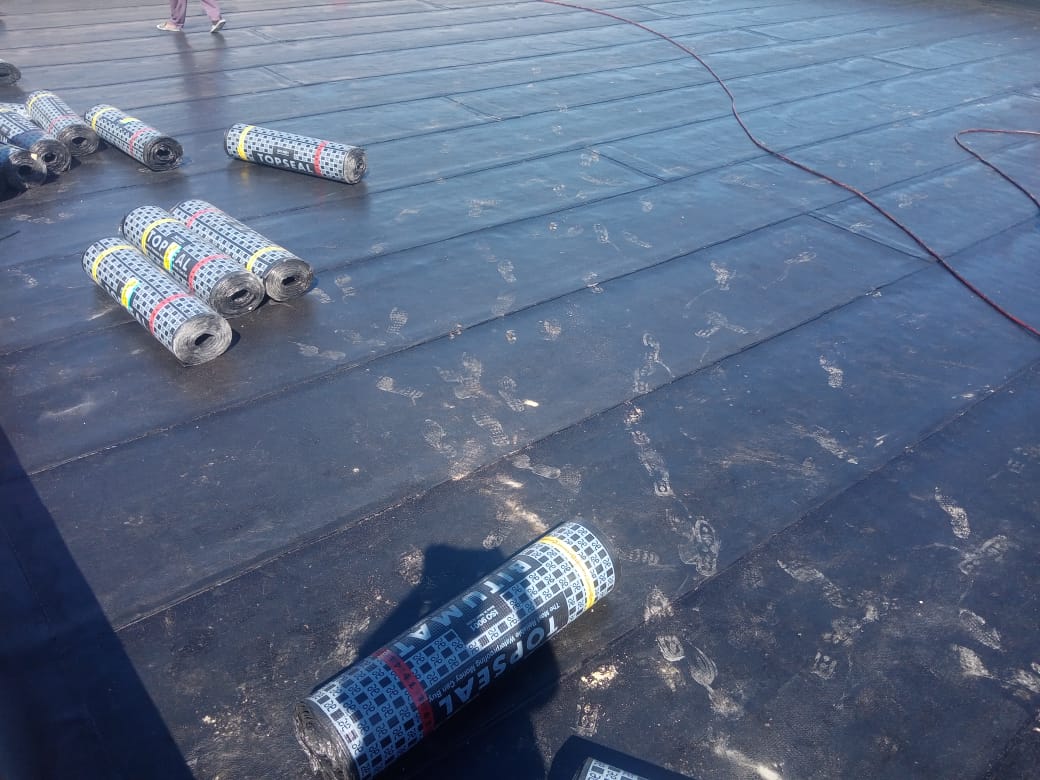 - ثانيًا: تُوضع طبقة أساسية من الملاط الإسمنتي على كامل السطح، وتُوزع بزاوية ميلان محددة.